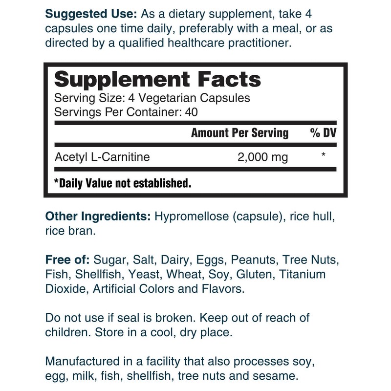 - One 4-capsule serving contains 2,000 mg of acetyl l-carnitine