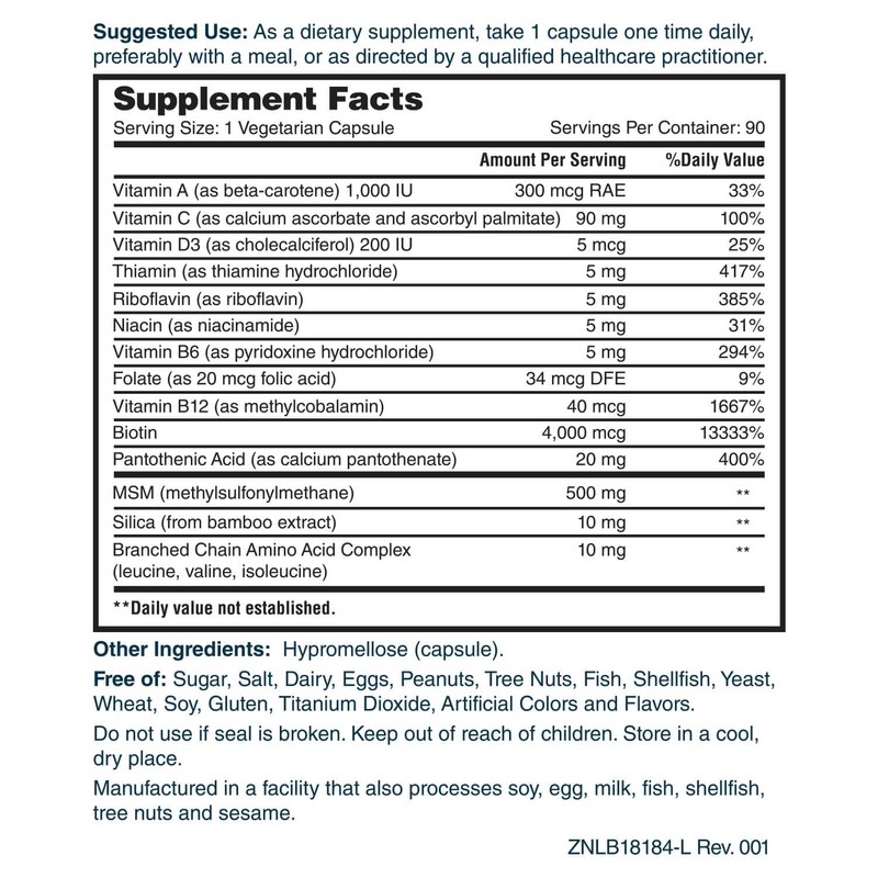 Nature's Lab Hair Skin and Nails - Biotin, BCAA, MSM, Vitamin Complex - 90 Ct (90 Day Supply)