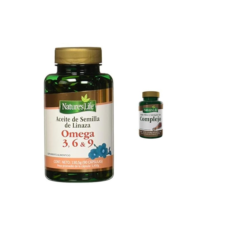 Nature’s Life Aceite de Linaza Omega 3,6 y 9 90 Caps + Complejo B & Ácido Fólico 40 Caps