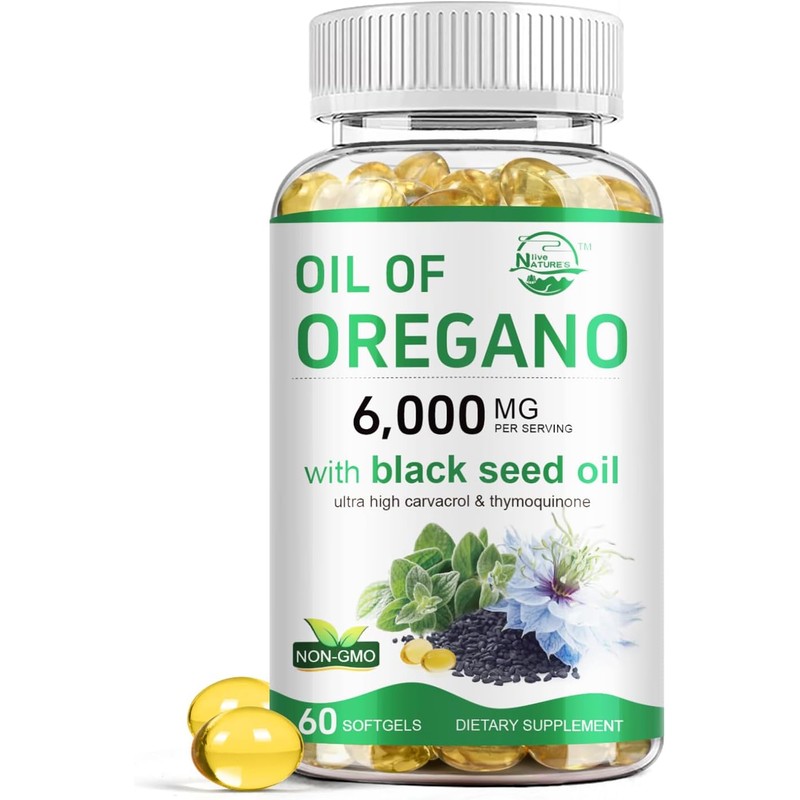 Nature's live Oil of Oregano with Black Seed Oil, 2 in 1 Oregano Supplement for Immune Health, Retains High Concentrated Carvacrol & Thymoquinone, Non-GMO, 60 Softgels, 1 Pack