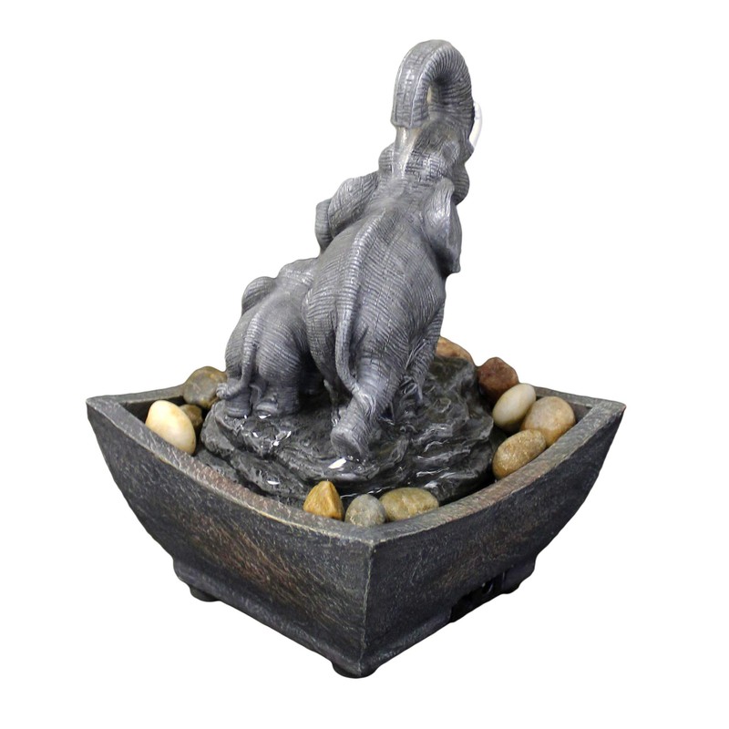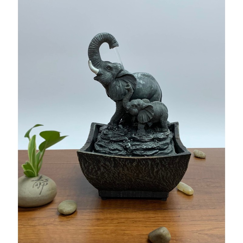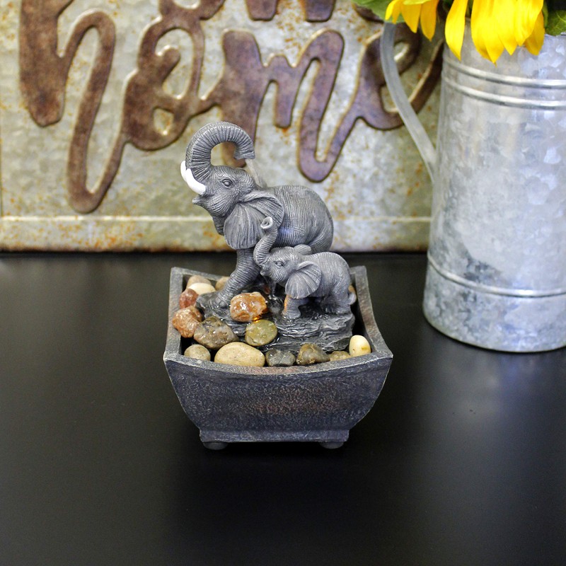 Nature's Mark 7.5" Playing Elephant & Baby Elephant Tabletop Water Fountain (with Adapter)