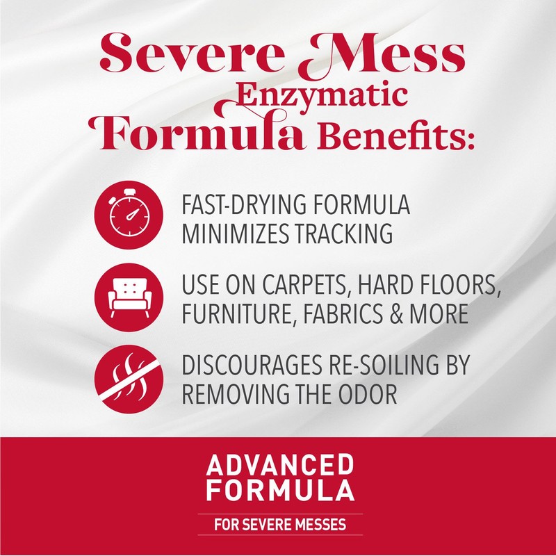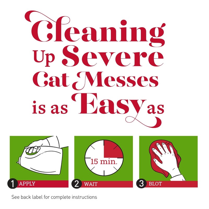 - FOR SEVERE CAT MESSES: Powerful enzymatic formula works to eliminate tough stains and odors from cat urine, diarrhea, vomit and other bio-based accidents.