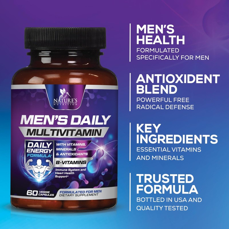 - Multi Men by Nature's Nutrition: Our best multivitamin for men are daily multivitamins for teens and adults over 40, 50, 60 years, men's vitamins supplements mens multi vitamin plus one 1 serving a day vitaminas nature hombres nutrition hombre multivitaminas natures him capsules supplement all once man complete packs suplementos
