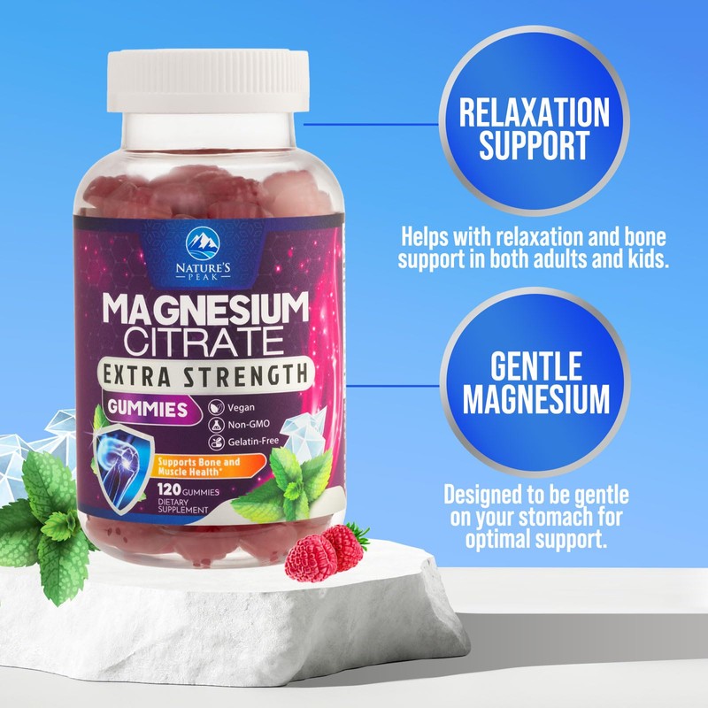 - Magnesium Citrate Gummies by Nature's Peak: Our Magnesium supplement gummies are chewable unlike complex capsules, pills, powder, capsule, spray, liquid, tablets, oil, and softgels and high absorption than oxide and digestion health support unlike glycinate, malate, glicinato, and threonate, bone muscle calm support citrato de magnesio mg gummy citrato adults mag vegan kids magnsium chews