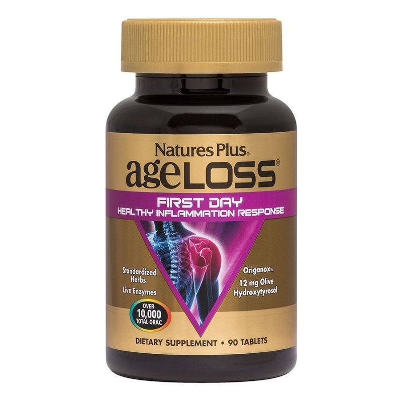 AgeLoss First Day Healthy Inflammation Response (> 10,000 ORAC) neutralizes free radicals that cause catastrophic effects of inflammation and digestive enzymes, such as bromelain and serapeptase / 4,000 ORAC).
