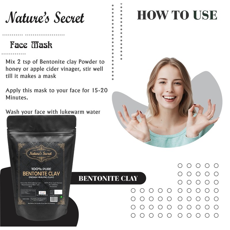 Nature's Secret Bentonite Clay Powder Organic for Clay Mask Detox, Brown, 250 g