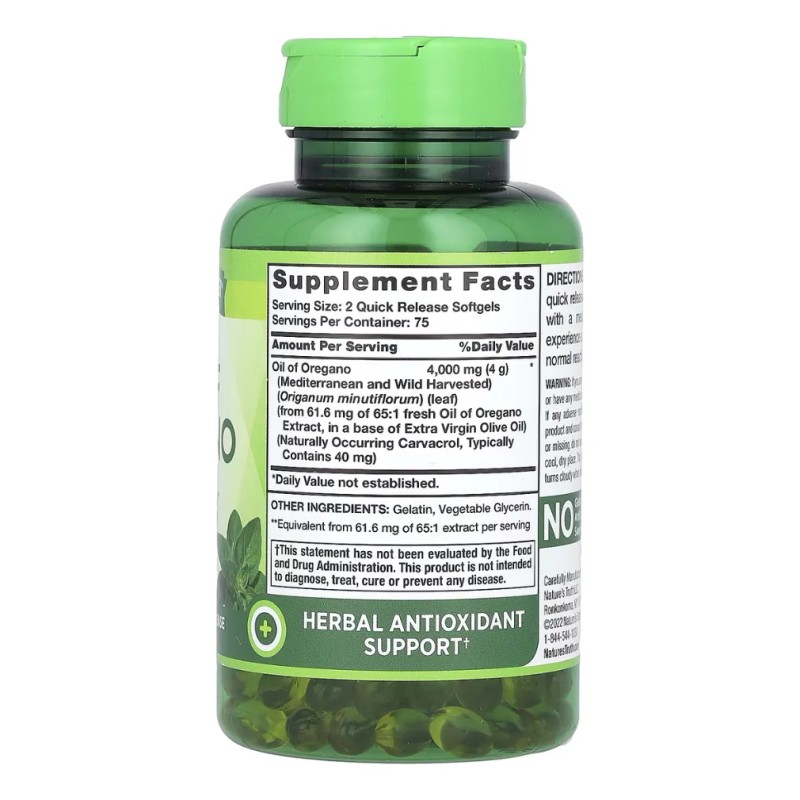 El Aceite de Orégano de Nature’s Truth es un suplemento de alta potencia que brinda los beneficios naturales del orégano (Origanum vulgare), una planta reconocida por sus propiedades antimicrobianas, antioxidantes y antiinflamatorias 🌿✨.