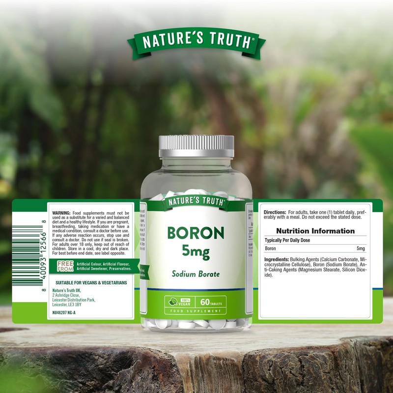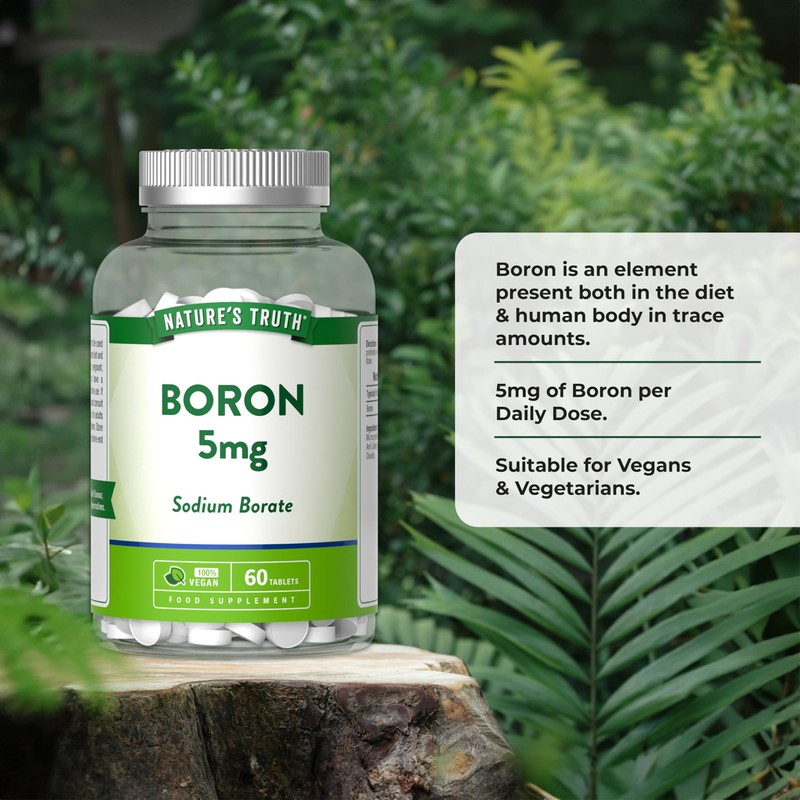 - FREE FROM: Nature's Truth knows the importance of a clean wellness experience. This is why our Boron Tablets are vegetarian & vegan and are free from artificial colours, flavours, or preservatives. It's the perfect formula for adult men and women at the best value.