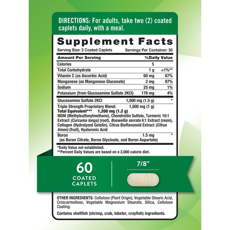 Nature's Truth Glucosamine Chondroitin MSM Complex | 60 Caplets | with Turmeric | Triple Strength Formula | Non-GMO and Gluten Free Supplement