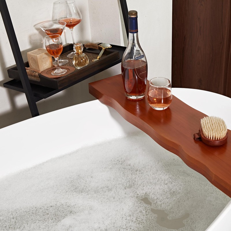 🛁This rustic yet chic caddy with live edges brings a touch of nature to your tub.