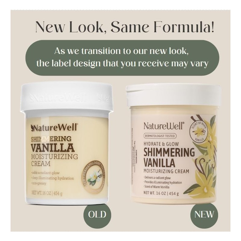 - NatureWells Dedication and Passion for Radiant, Confident Self-Care: At NatureWell, were driven by a team of visionary women committed to crafting skincare that nourishes and illuminates, empowering you to embrace your natural glow. The Hydrate & Glow Shimmering Vanilla Moisturizing Cream reflects this vision, with ingredients designed to hydrate, enhance radiance, and envelop you in the warm scent of vanilla. This product represents more than just skincare; its a celebration of our values, supporting women in feeling pampered, luminous, and confident in their daily self-care rituals.
