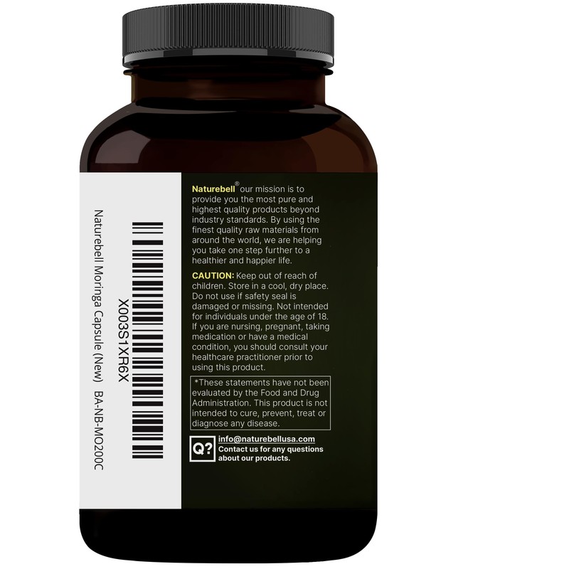 - NatureBell’s moringa is extracted from fresh leaves that are harvested on Indian farms, helps retain high levels of antioxidants, minerals, essential amino acids, vitamins, natural fiber, polyphenols, and flavonoids.
