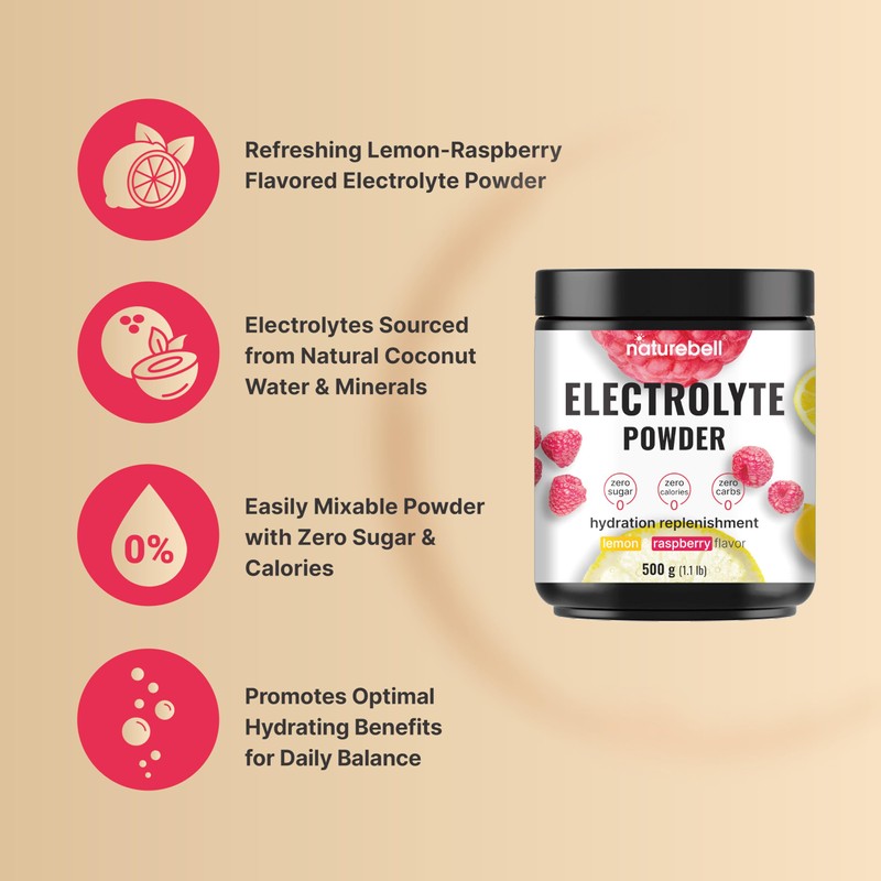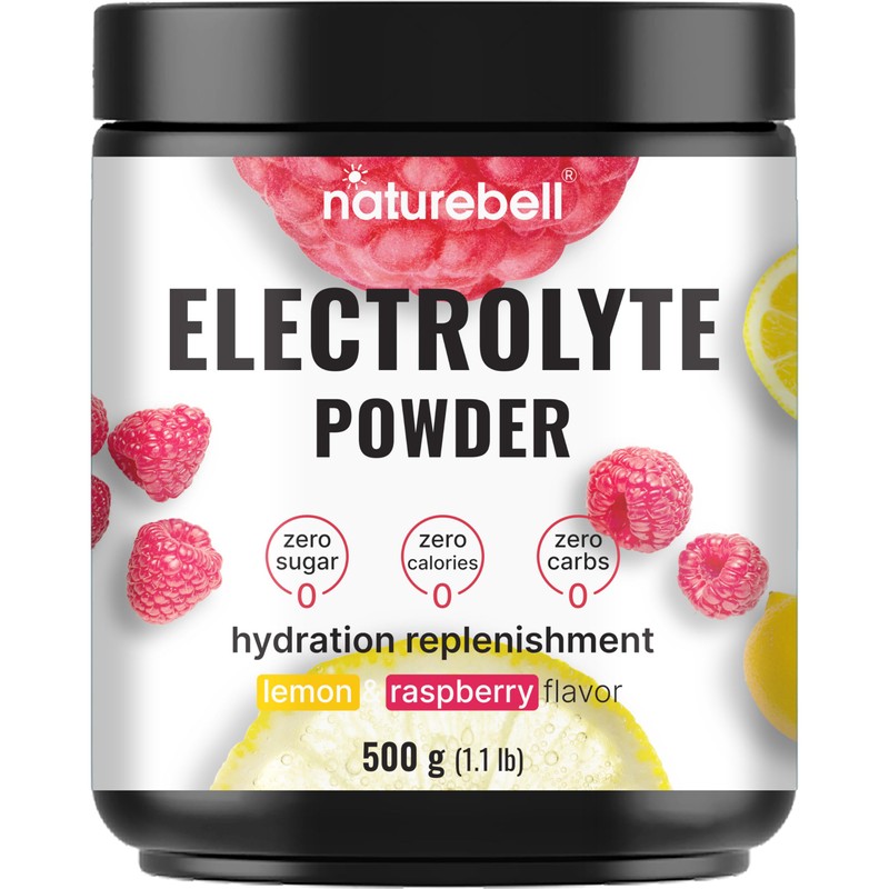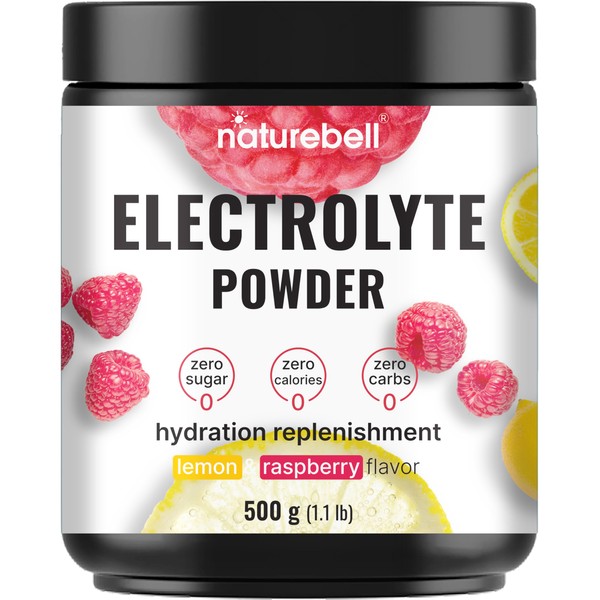 Naturebell Electrolytes Powder No Sugar, 500g (76 Servings) | Keto Fast Hydration Formula | 1,000mg Potassium + Trace Minerals & Coconut Water | Raspberry Lemonade Flavor | Carnivore Friendly