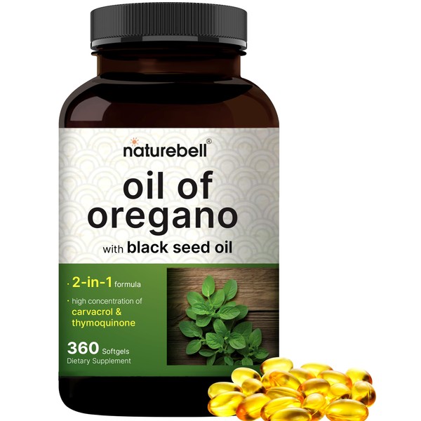 NatureBell Oregano Oil 7,500mg with Black Seed Oil, 360 Softgels | 360-day Supply Essential Oils for Immune Health | Retains High Concentrated Carvacrol & Thymoquinone – Non-GMO