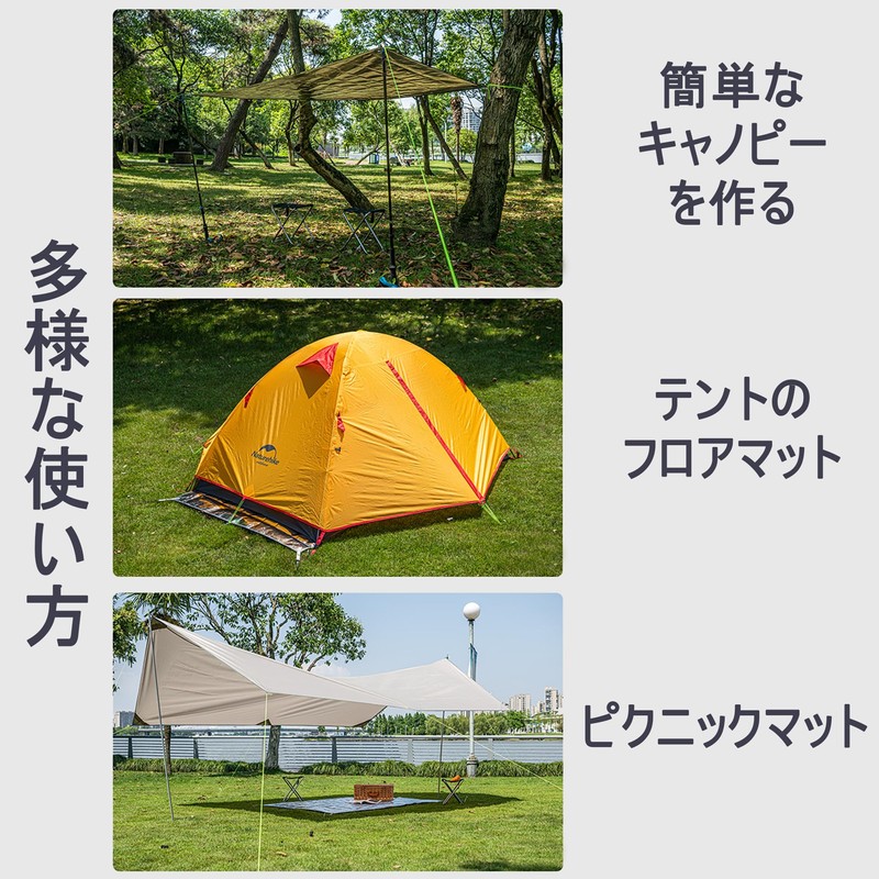 This tent mat is made of high quality PE + aluminum foil, and has three layers of overall construction. It provides excellent insulation, reflectivity, water resistance, and heat retention.