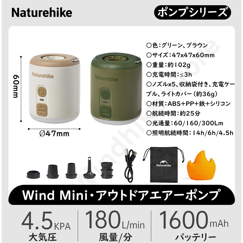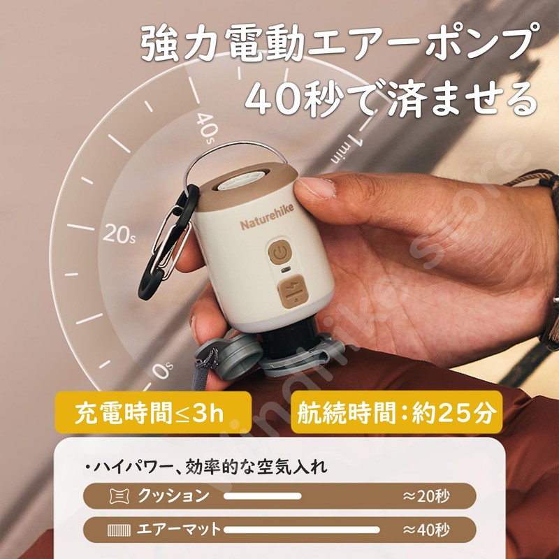 Naturehike Electric Air Pump can achieve 4.5 KPA air pressure and 180 L/Min Built-in 1600mAh lithium battery.