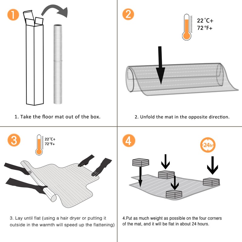 • PREMIUM RECYCLABLE MATERIAl: The transparent surface is treated with a special texture to ensure that the carpet chair mats do not slip when you move it, and the clear design allows the beauty of your floor to shine through. Easy to clean, simply wipe with a cloth.