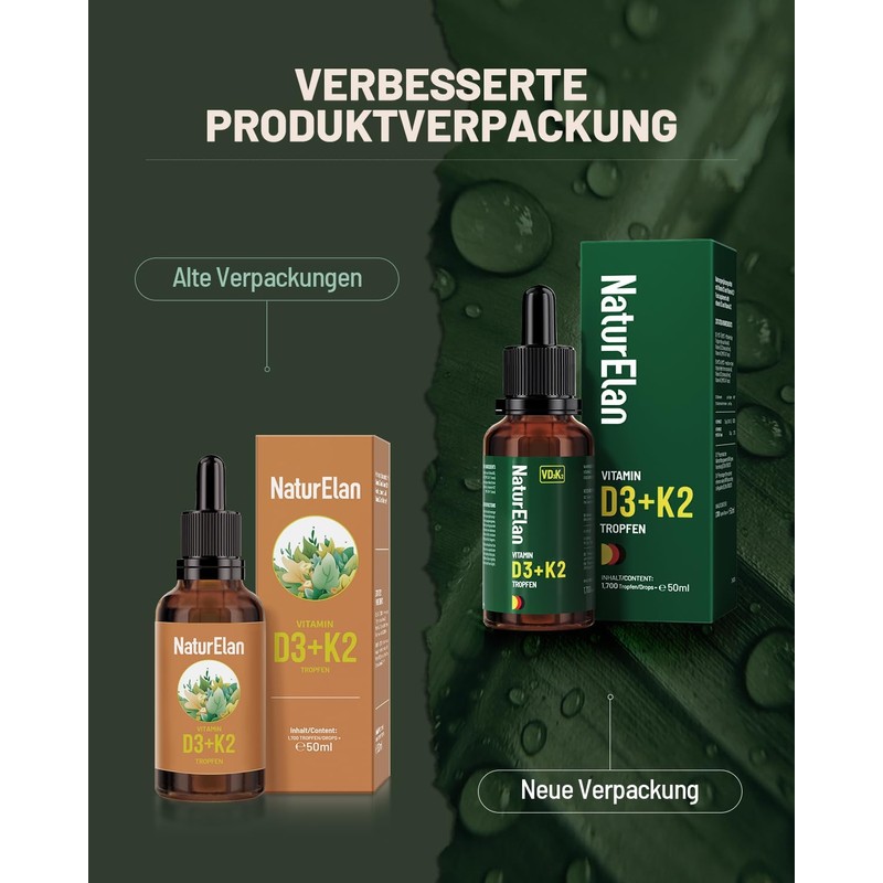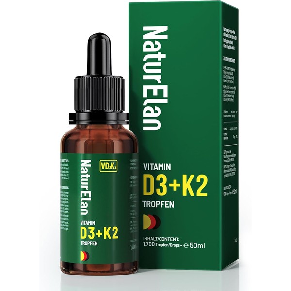 NaturElan Vitamin D3 K2 High Dose Drops – 50 ml, 1000 IU Vitamin D3 per Drop,...