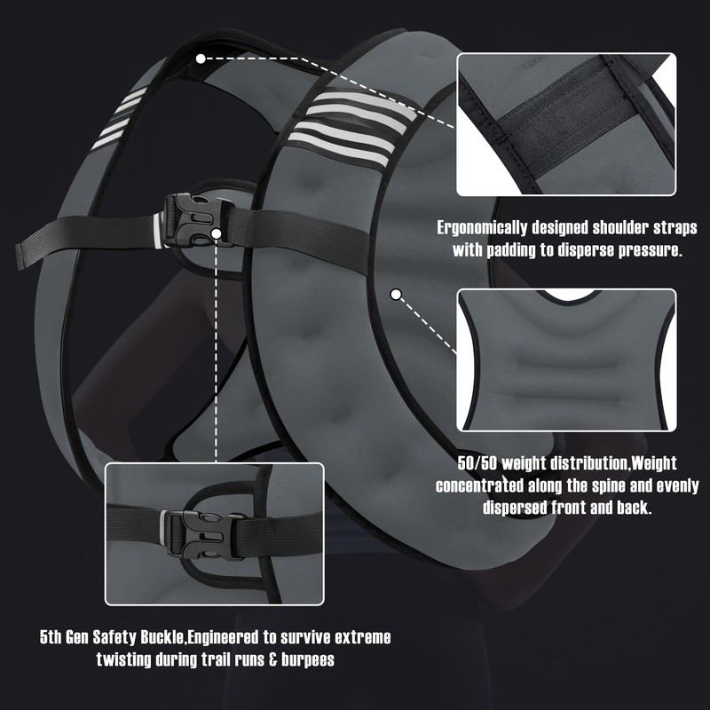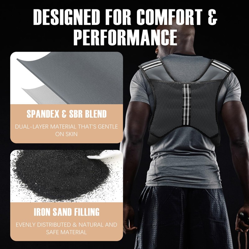- Durable & High-Performance Design - Built to last with heavy-duty neoprene rubber and double-stitched seams, this weighted vest resists wear from intense workouts. Iron sand filling ensures stable weight distribution without shifting, ideal for running, HIIT, fitness, fitness, walking or strength training.