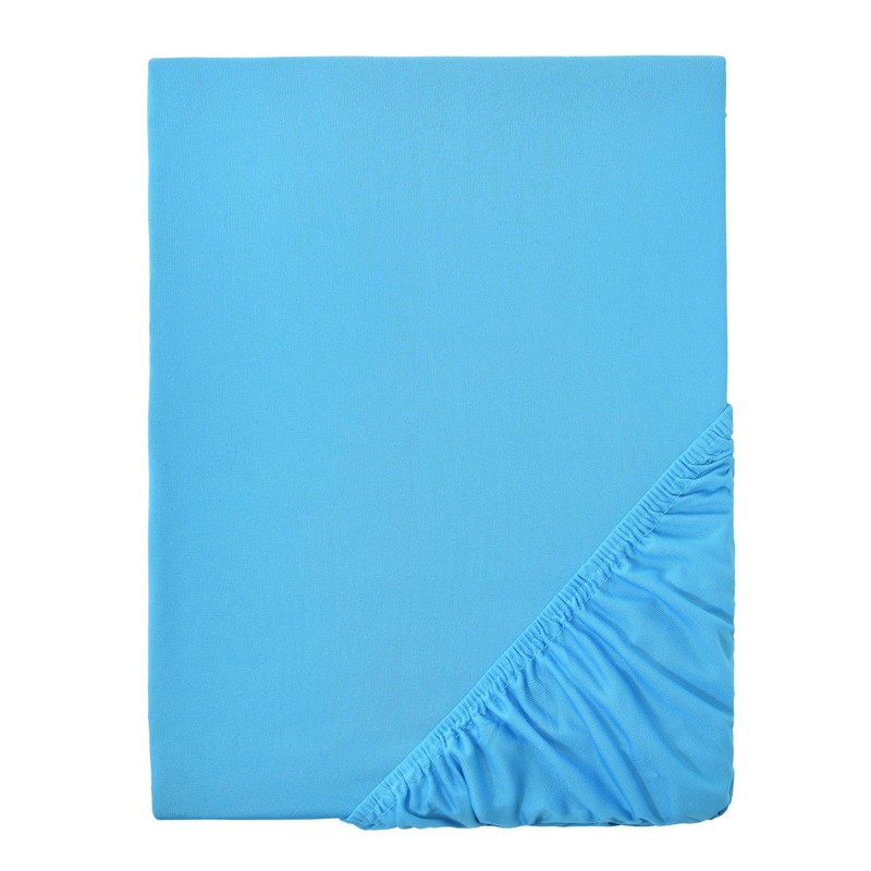NatureMark Basic Set of 2 Jersey Fitted Sheets, 90 x 190 cm, 100 x 200 cm, 25 cm Bridge, 100 x 200 cm, 100% Cotton, turquoise