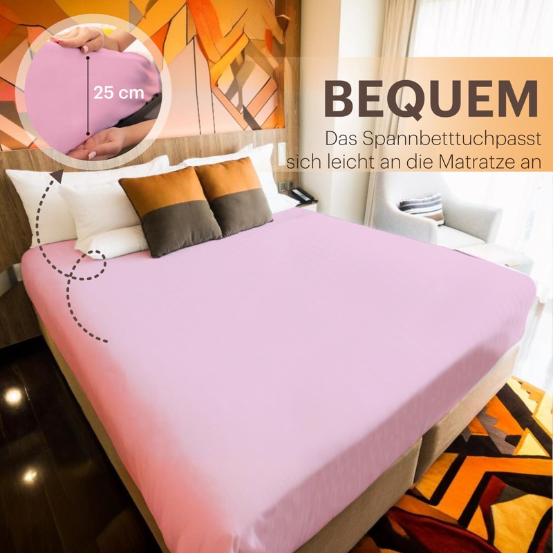 - Perfect fit thanks to a rubber hem – the fitted sheets are suitable for a base height of approx. 25 cm.
