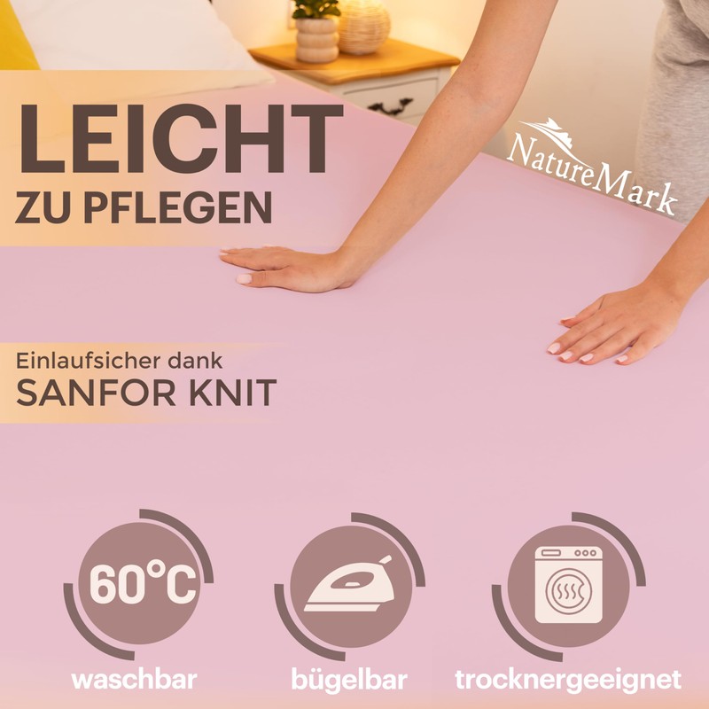 NatureMark Jersey Fitted Sheet, 100% Cotton, in Many Sizes and Colours, Brand Quality, Oeko-Tex Standard 100, 140 x 200 cm to 160 x 200 cm, Pink