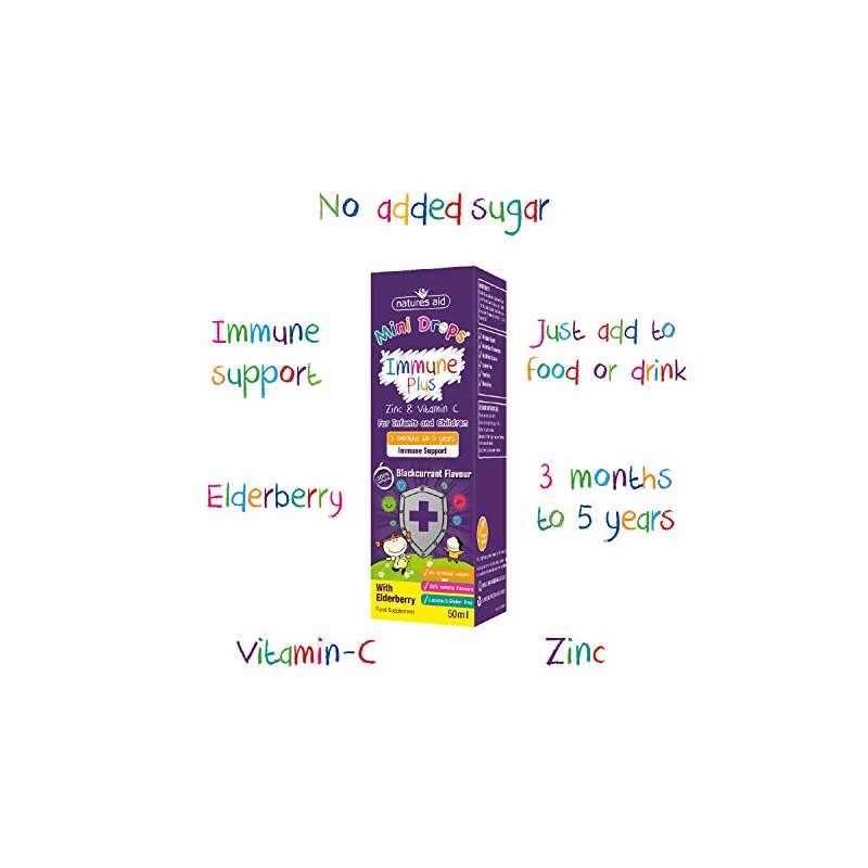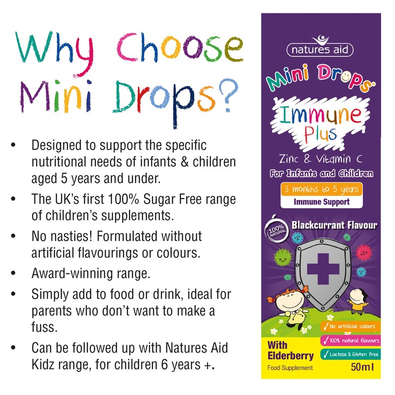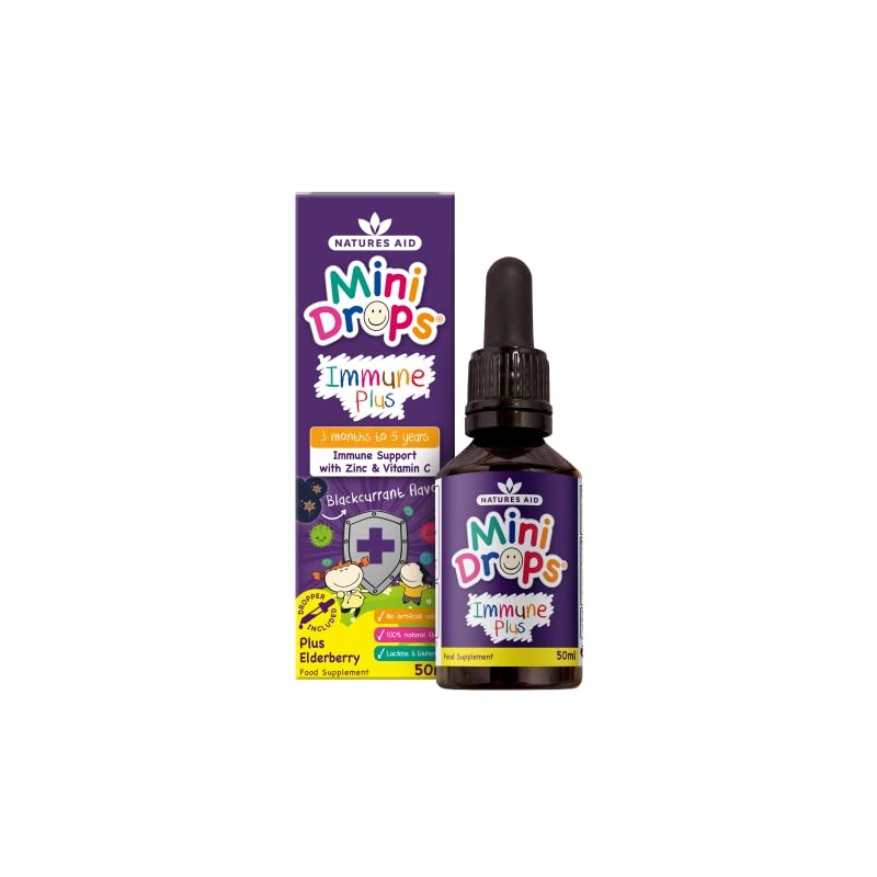 Natures Aid Immune Plus Mini Drops for Infants and Children, No Added Sugar, 50 ml (Pack of 1)