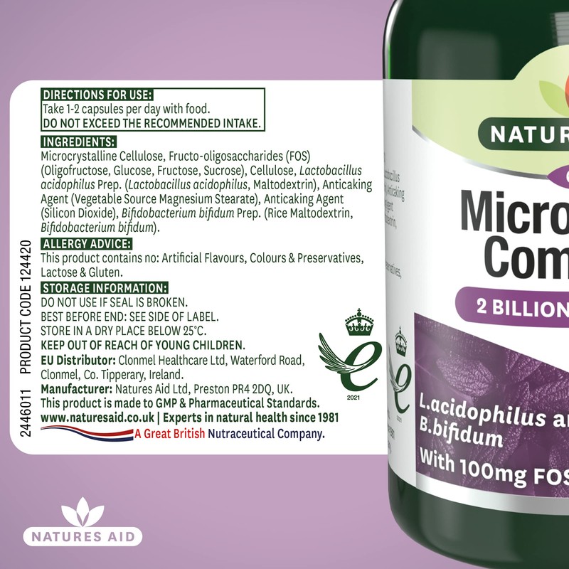 Natures Aid Microbiotic Complex (L.Acidophilus and Bifidus, with FOS), Vegan, 60 Capsules