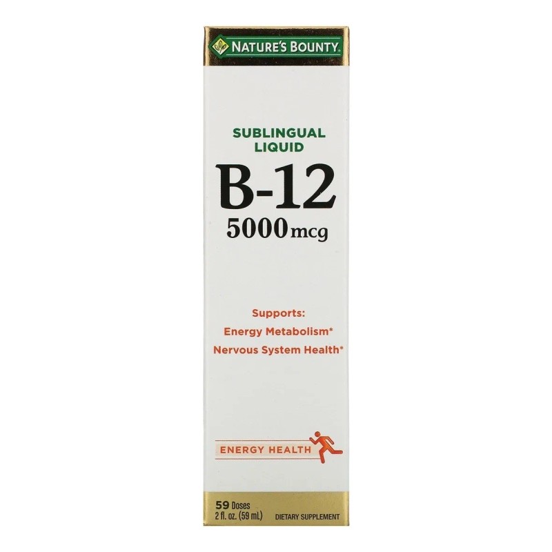 🌟 ⭐ Nature's Bounty Vitamin B12 5000 mcg Líquido Sublingual, Salud Cardiovascular y Apoyo Energético Celular, 2 onzas líquidas (1 unidad) ⭐ 🌟