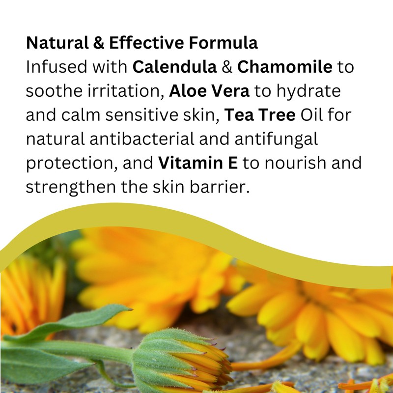 - Hydrating & Nourishing Formula : Infused with Calendula, Chamomile, Aloe Vera, and Vitamin E to moisturise, soothe, and support skin healing.