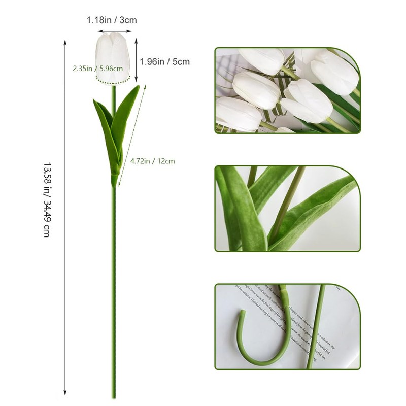 - These White tulips artificial flowers from high-quality PU material, ensuring they are odorless and never fade. Perfect for weddings, Valentines Day, Mothers Day, and Easter, adding a touch of elegance to any occasion.faux white tulipsfaux tulips flowersLeaf length: 1.77in