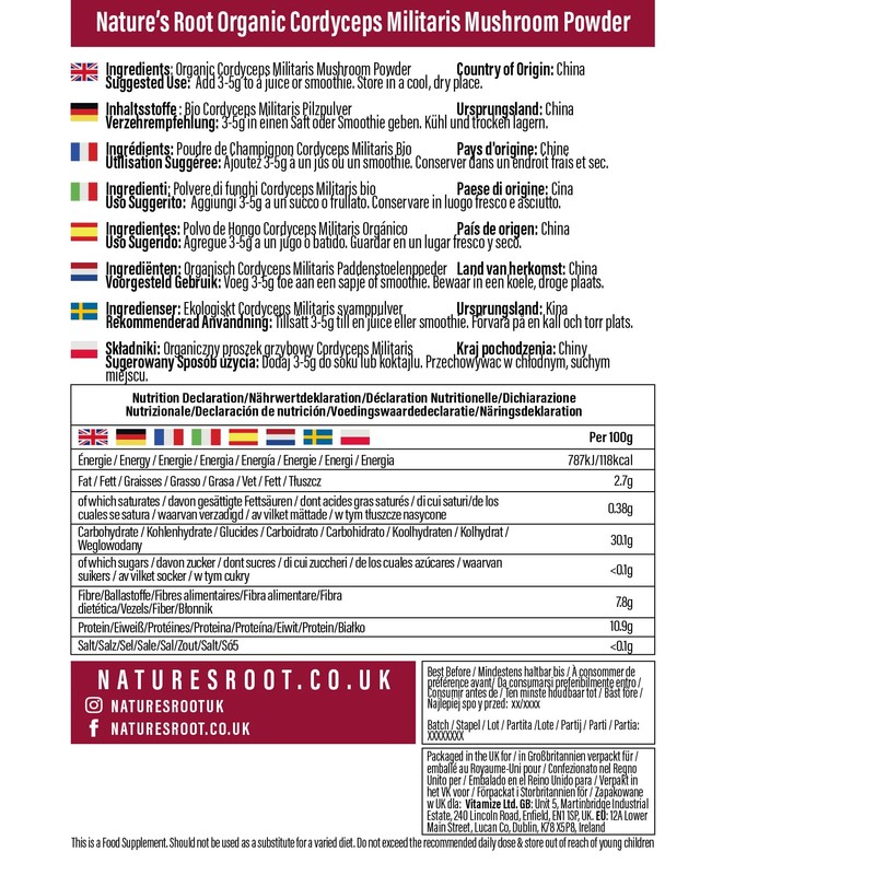Natures Root Organic Cordyceps Mushroom Powder 60g