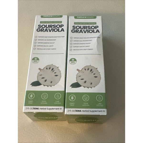NatureSours NEW Lot of 2 Soursop Graviola 60ml Herbal Supplement Joint Health T24