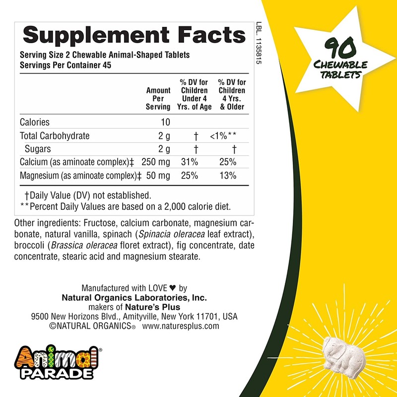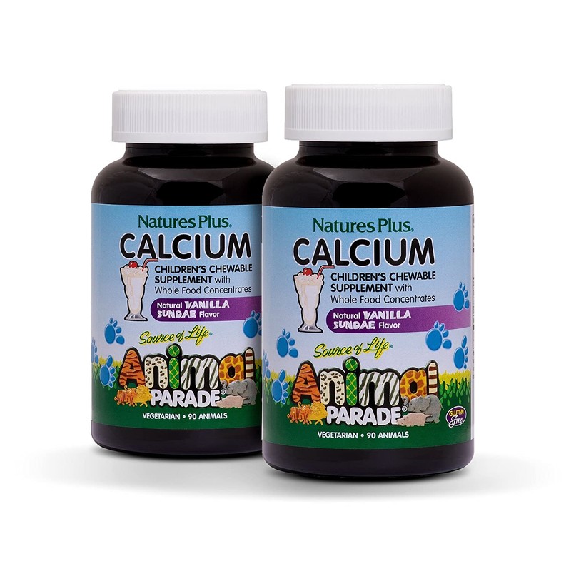NaturesPlus Animal Parade Source of Life Children's Calcium Supplement (2 Pack) - 90 Animal Shaped Tablets - Vanilla Sundae Flavor - Magnesium For Bone Health - Gluten-Free - 45 Total Servings by Nature's Plus Store