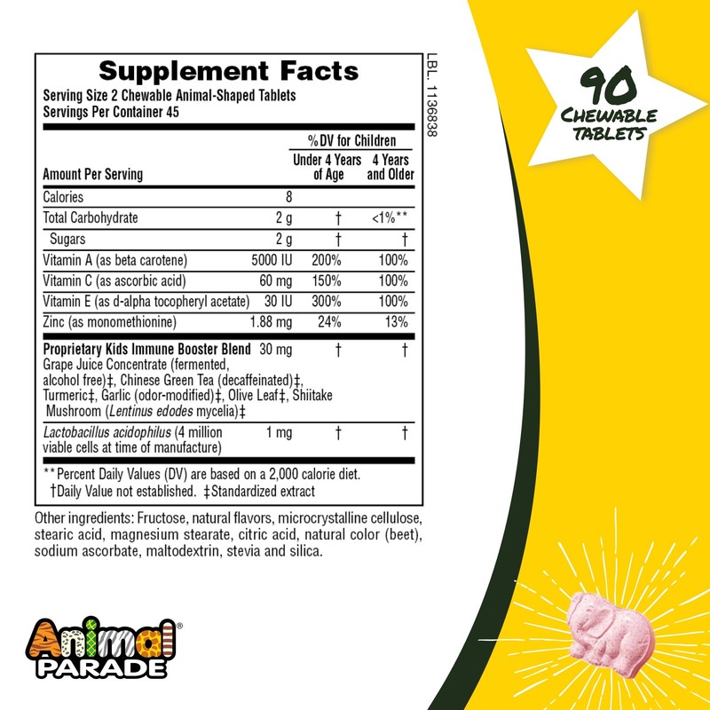 NaturesPlus Animal Parade Source of Life Kids Immune Booster Chewable - Tropical Berry Flavor - 90 Animal Shaped Tablets - Gluten-Free - 45 Servings by Nature's Plus Store