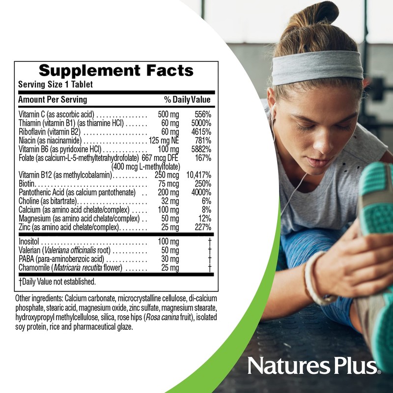 NaturesPlus Mega-Complex, Sustained Release - 60 Vegetarian Tablets - B Complex, Vitamin C Supplement, Chamomile & Herbs for Natural - Gluten-Free - 60 Servings