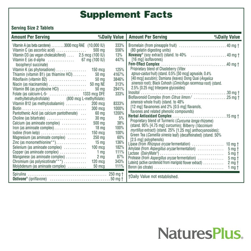 NaturesPlus Natures Plus Source of Life Women - 120 Tablets, Pack of 2 - Multi-Vitamin & Mineral Supplement - with Iron, Calcium, Folate & Lutein - Gluten Free, Vegetarian - 120 Total Servings