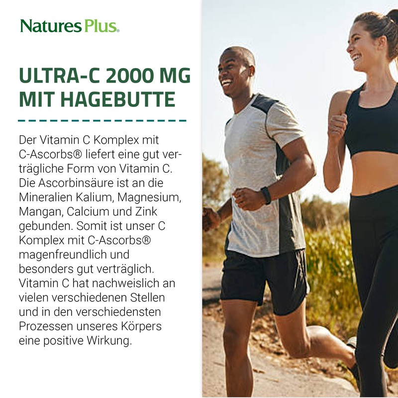 - Increased bioavailability: our high-dose vitamin C 2000 mg contains vitamin C in combination with rose hips, which increase the bioavailability of vitamin C in delayed release tablets.