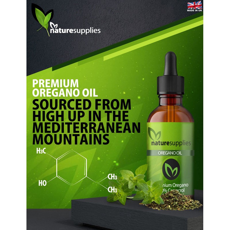 Naturesupplies Wild Oregano Oil 10ml Made in UK, Grown in The Mountains of The Mediterranean, 80 Percent Plus Carvacrol,125-130mg Carvacrol Per Serving, Super Potent Essential Oil