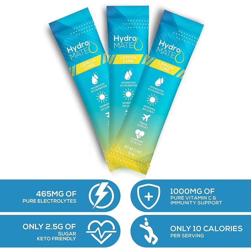 NatureWorks HydroMATE Electrolytes Powder Low Sugar - 16 Count Lemon Lime Instant Hydration Packets with Vitamin C to Boost Energy - Low Sugar Electrolytes Powder Packets to Support Hydration Fast Party Recovery
