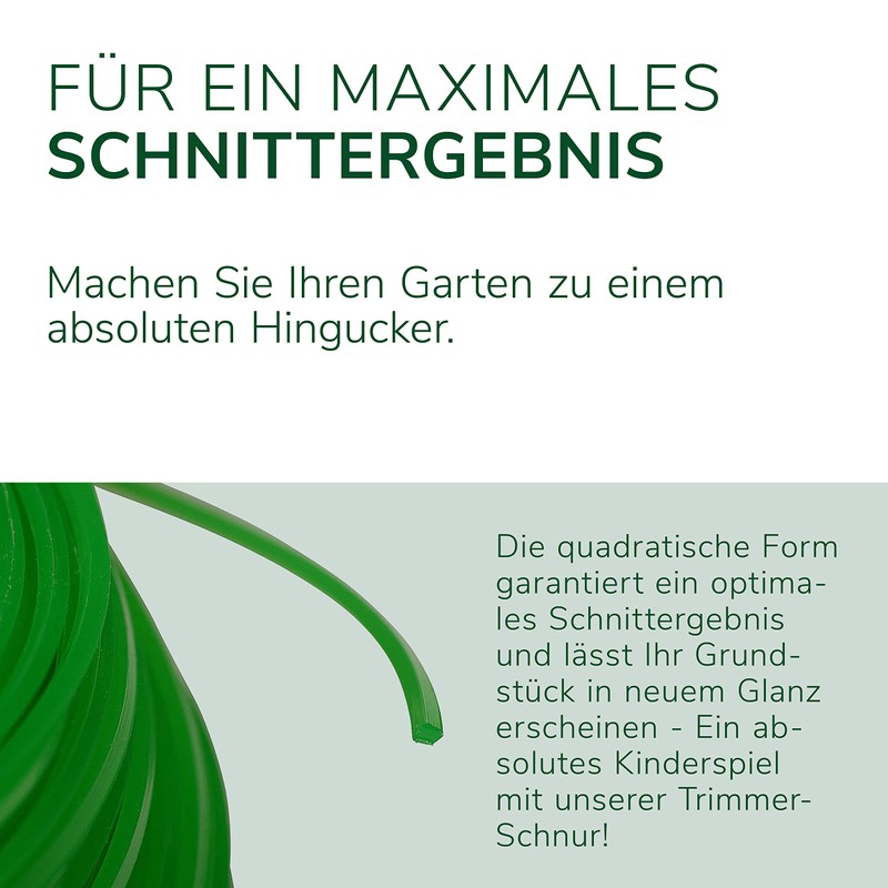 • 100% precision – with our trimmer line from Natursache you can cut your lawn and its edges quickly and precisely without annoying extra effort. Convince yourself today and order now!
