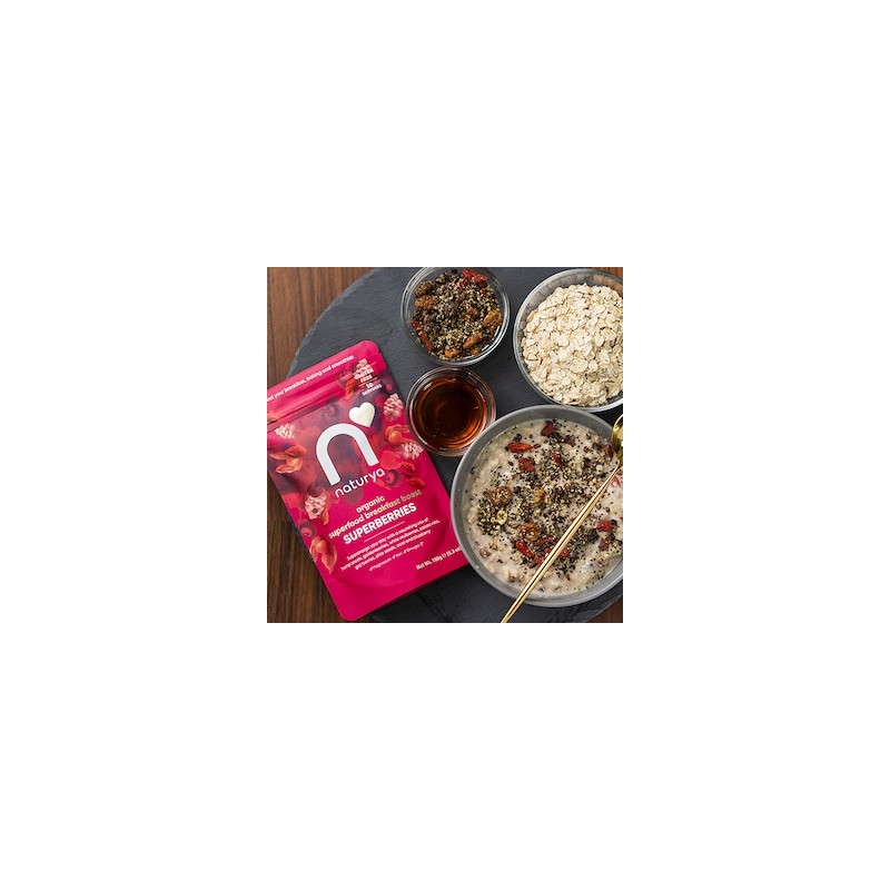 Naturya Breakfast Boost Superberries is just what you need to supercharge your breakfast with just one spoonful of 5 amazing superfoods. Naturya's products are nature's most nutrient-rich foods. A quick sprinkle will supercharge your meals with the goodness your body needs.