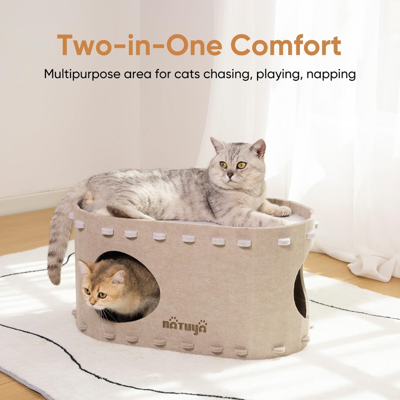 NATUYA Cat Cave Bed for Indoor Cats, Cat Tunnel House for Multiple & Large Cats Up to 10KG, Scratch Resistant Felt Cat Caves, Foldable Cat Hideaway Bed
