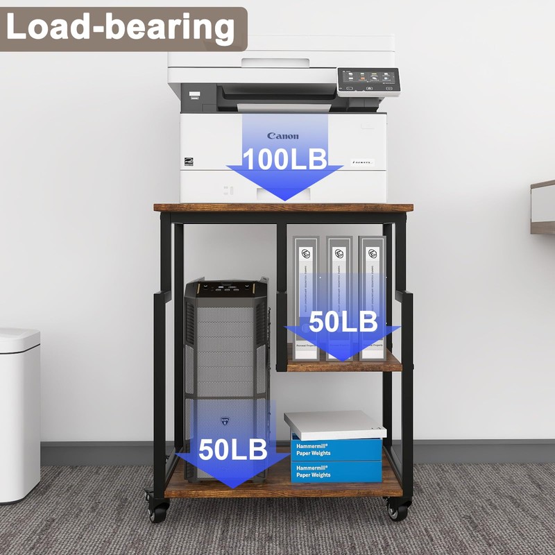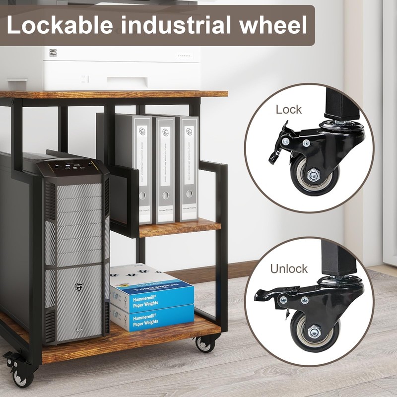 - 【Both the Feet and Casters Included】 The 3-Tier Mobile Printer Table is equipped with four lockable industrial grade wheels, it can rotate 360 degrees to move smoothly and quietly, also can be locked to keep in position and stability. Besides, we also provide 4 adjustable foot pads for your replacement.
