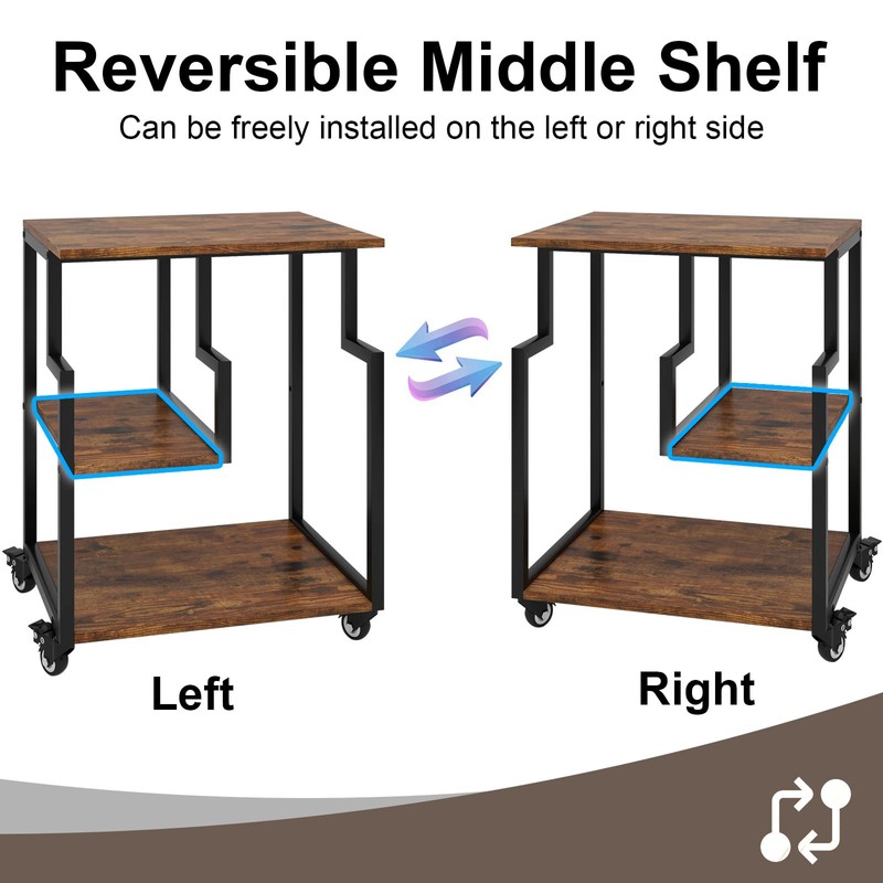 - 【Reversible Middle Shelf】The middle layer board of the rolling cart can be installed on the left or right side according to your needs.The reversible installation will be more convenient for your use and make your life more comfortable.