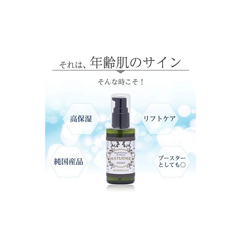 Characteristics of Proteoglycan Natural Doll Proteoglycan undiluted solution is a 100% serum solution (cosmetic solution) that is bottled as a water-soluble proteoglycan raw from the cartilage of salmon (Proteoglycan certification). When you use new aging care, you can expect a variety of effects such as increasing the amount of exfoliating water and holding water, improving skin elasticity, sunburn, preventing freckles and improving skin rashes. The ability to retain moisture beyond hyaluronic acid, keeping your skin hydrated for a long time. It also serves as a booster to enhance the penetration of other lotions and serums, providing deep support for your skin. If your skin is not sufficiently moisturized, or if you are old skin, or have dull skin, or use it as a serum For better cosmetic effect, it is recommended to use with other basic cosmetics.