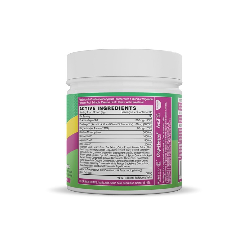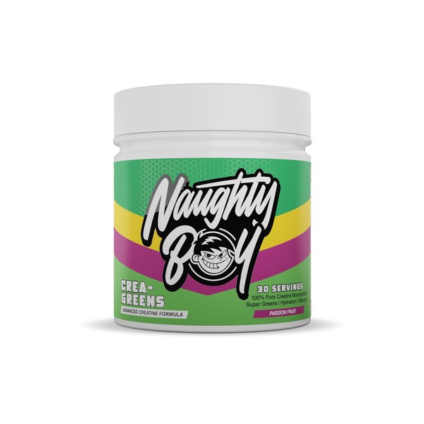 Naughty Boy Crea-Greens Powder, Creatine, Super Greens and Electrolytes. Boosts Performance, Health, Immune System and Hydration. Amazing Taste, Suitable for All Adults 270g (Passion Fruit)