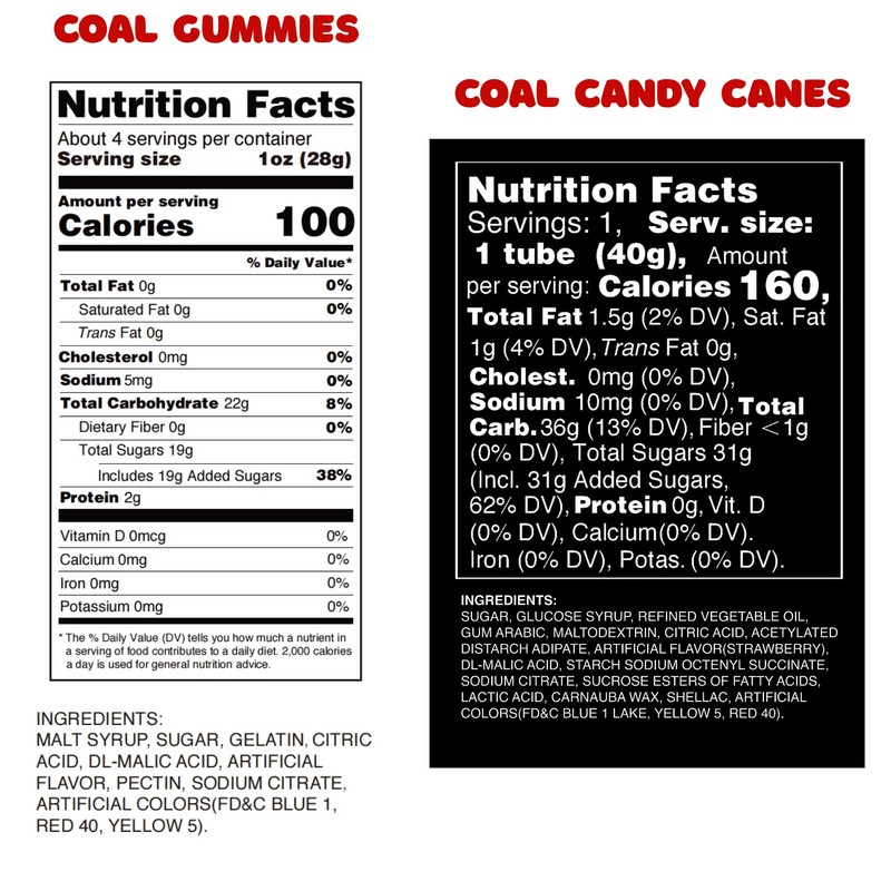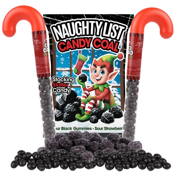 Naughty List Christmas Candy Coal Gift Set, Sour Gummies and Strawberry Chews, Funny Stocking Stuffer Treats, 3 Items