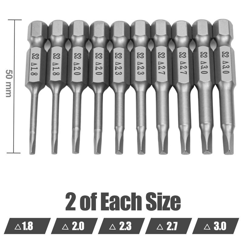 Triangle Screwdriver Bit Set Sizes:1.8mm, 2mm, 2.3mm, 2.7mm, 3mm (2 of Each Size)