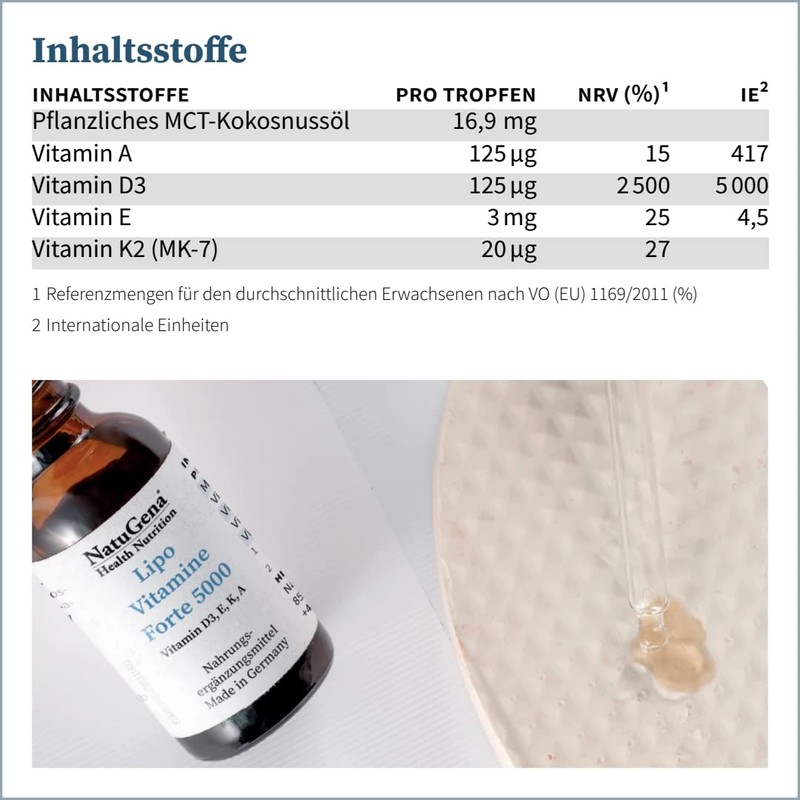 NautGena Lipo VitamineForte 500 Vitamin D3 E K A for Strong Immune System 20 ml Family Pack